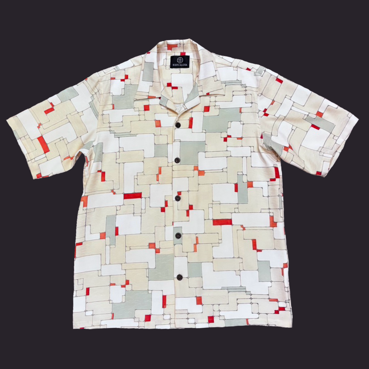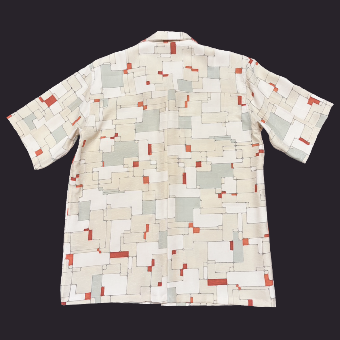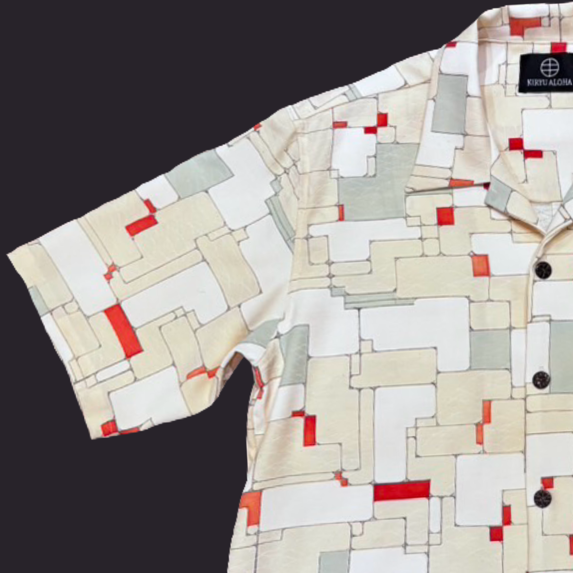 単純な四角を様々に重ねたことで複雑で珍しい柄に見せています。