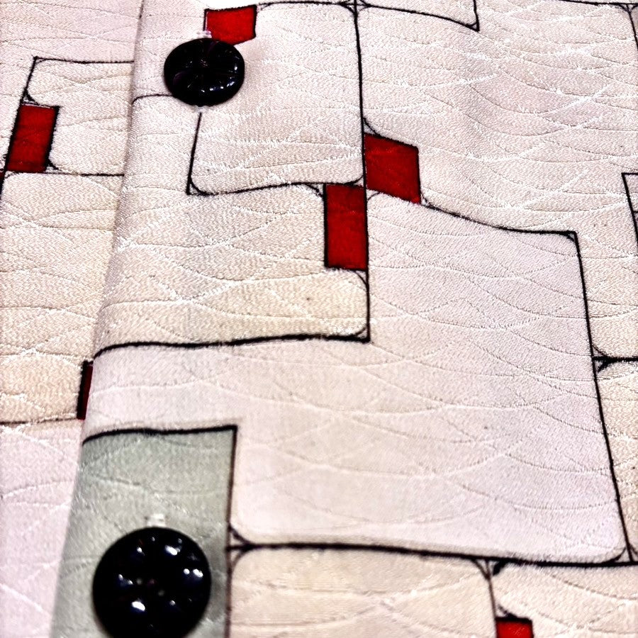 モダンな四角形を幾重にもかさねた柄の小紋。
