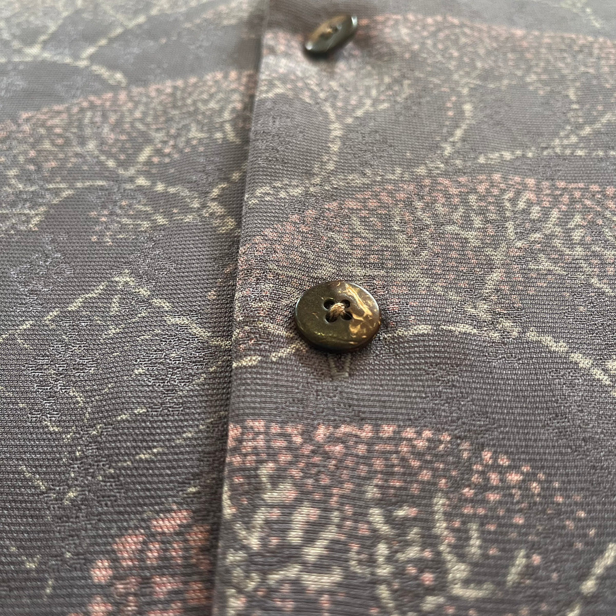 型染で木々と葉を染めた小紋をアロハシャツに。
