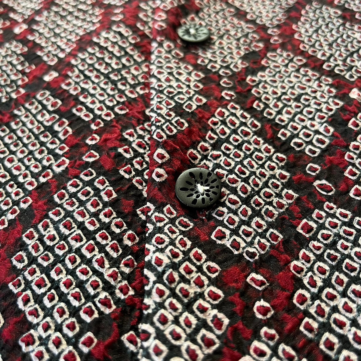 総絞りは染める前に生地すべてを非常に細かく括る必要がある職人の技術と手間を要す技法で多くの染め技法の中でも最も贅沢なもののひとつとして知られています。