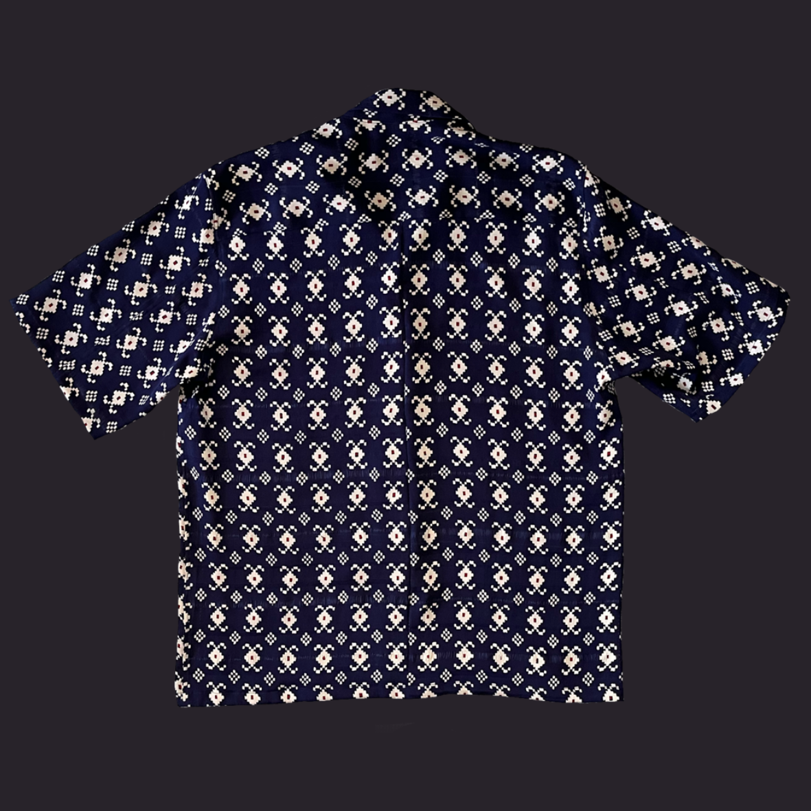 個性的でありレトロな印象を受ける印象的な小紋です。