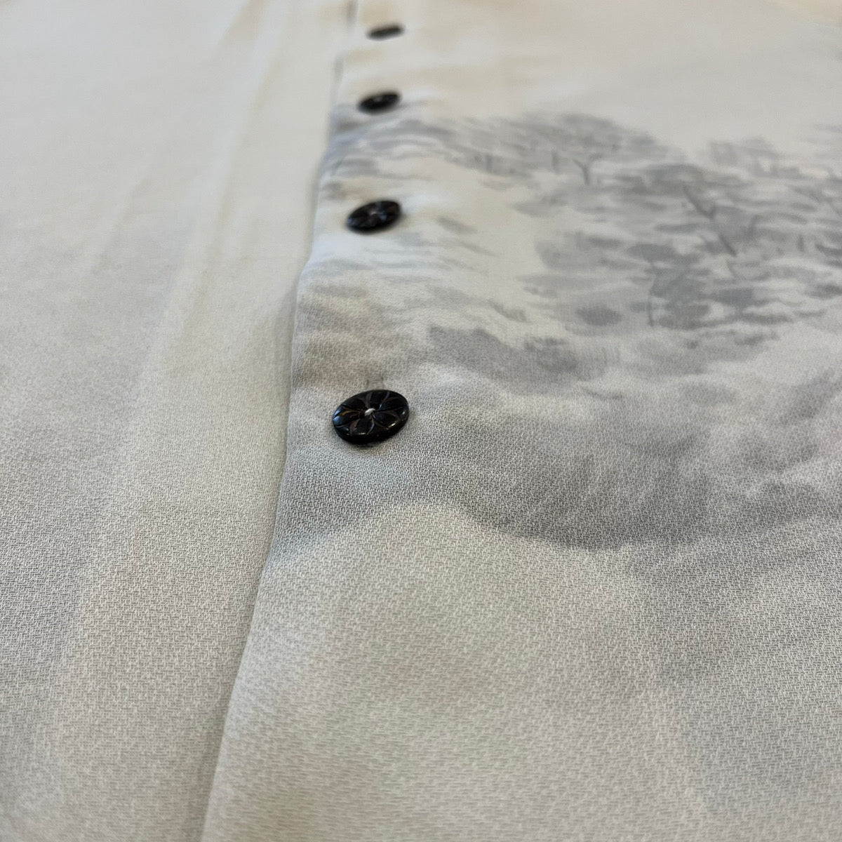 水墨画調で生い茂る木々を描いた着物から。