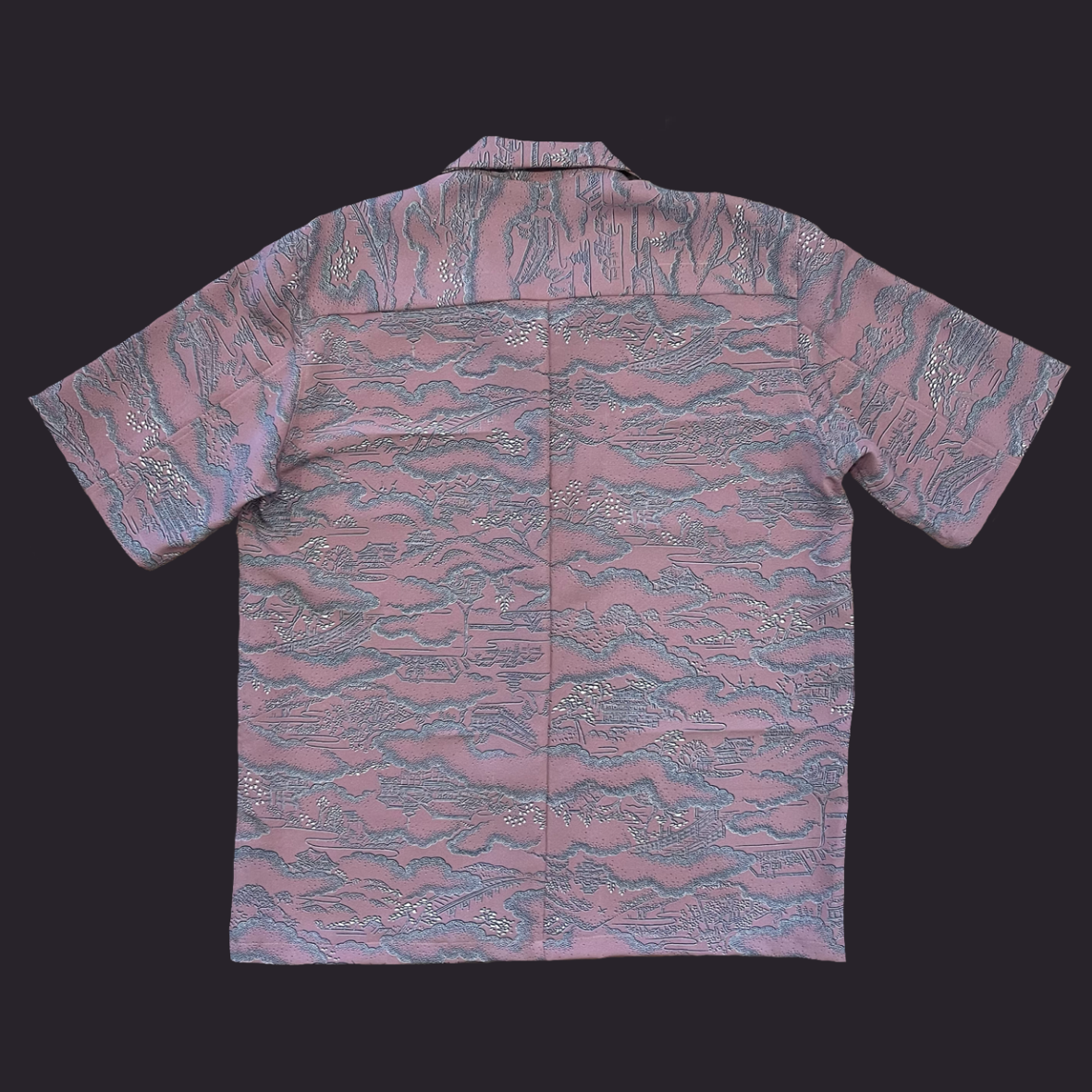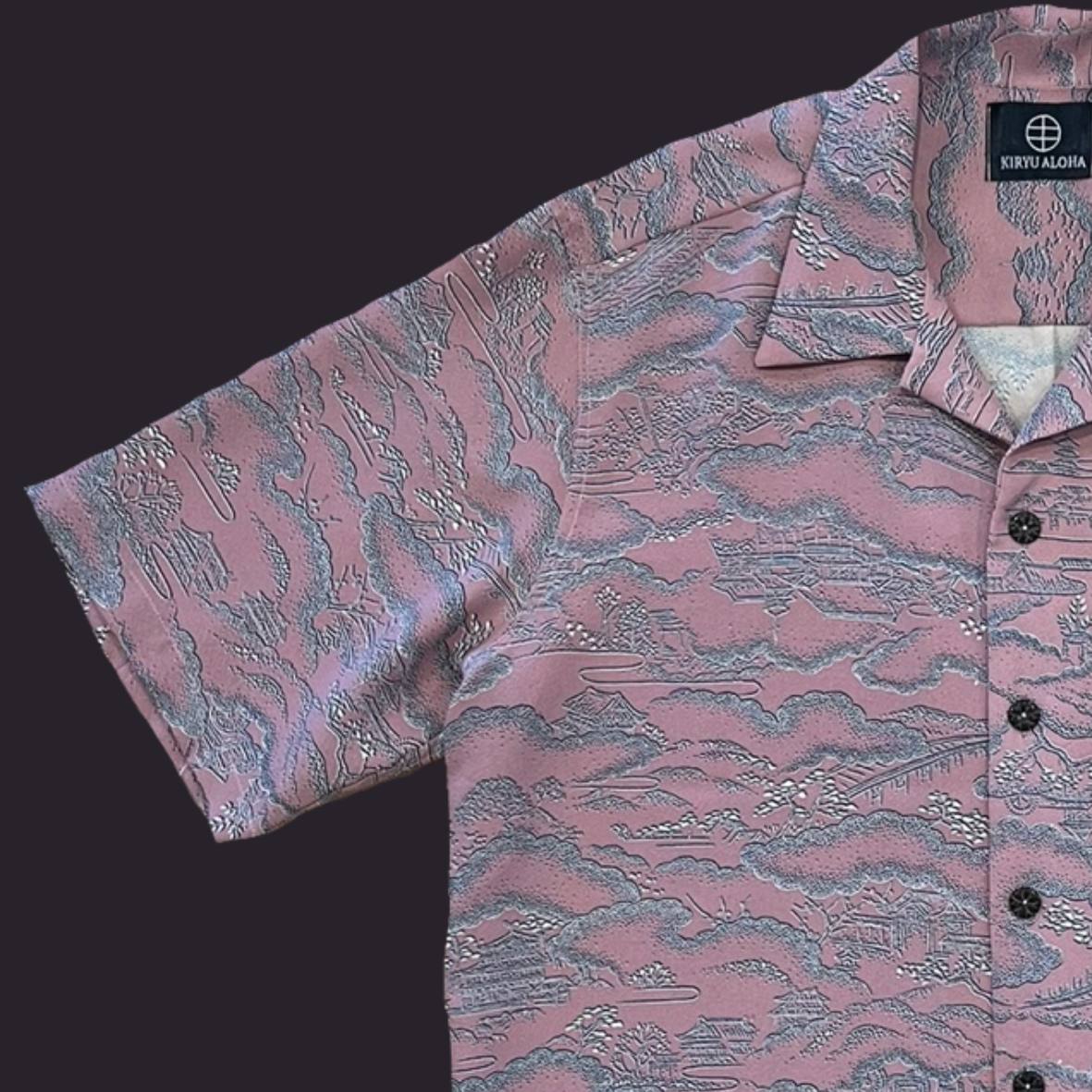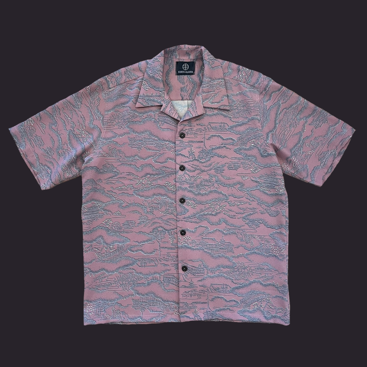 雲の中に茶屋辻文様を表現した小紋をアロハシャツに。