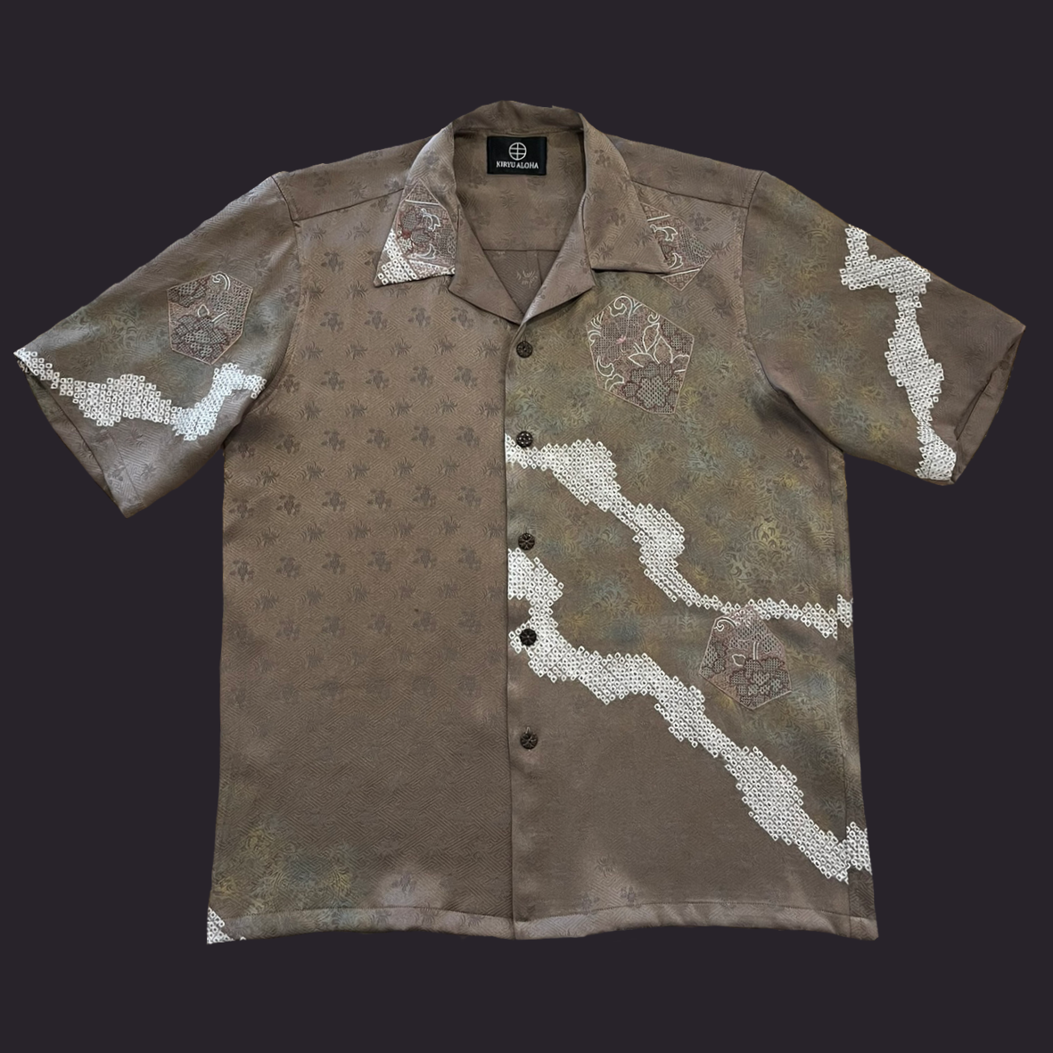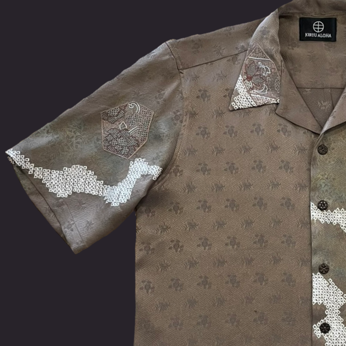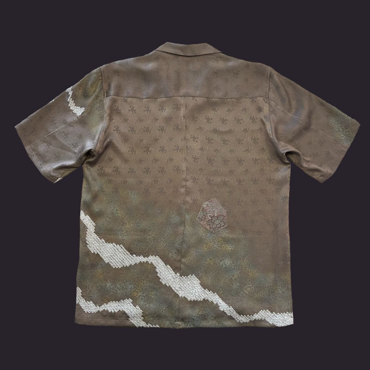 汕頭刺繡を所々に施した訪問着をアロハシャツに。