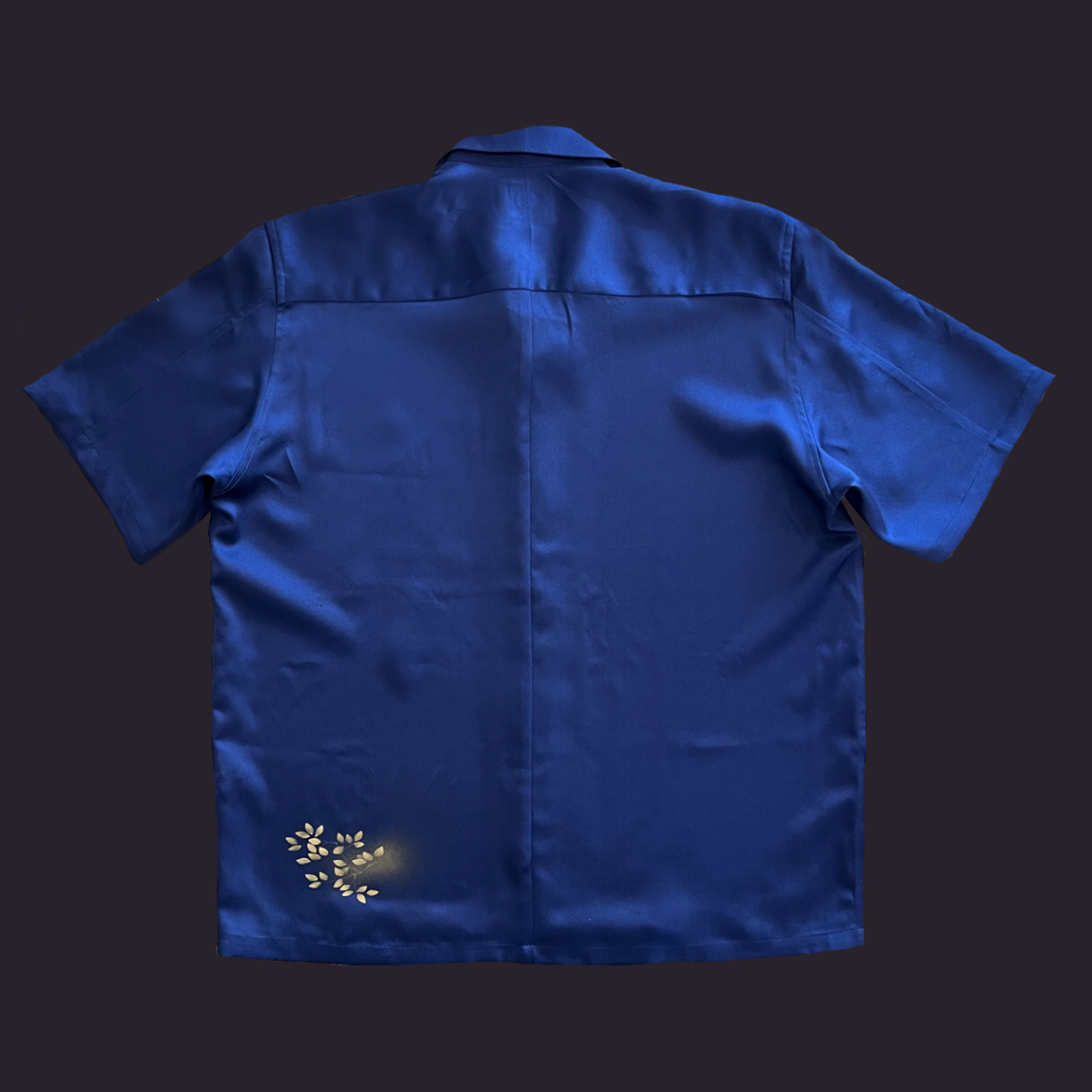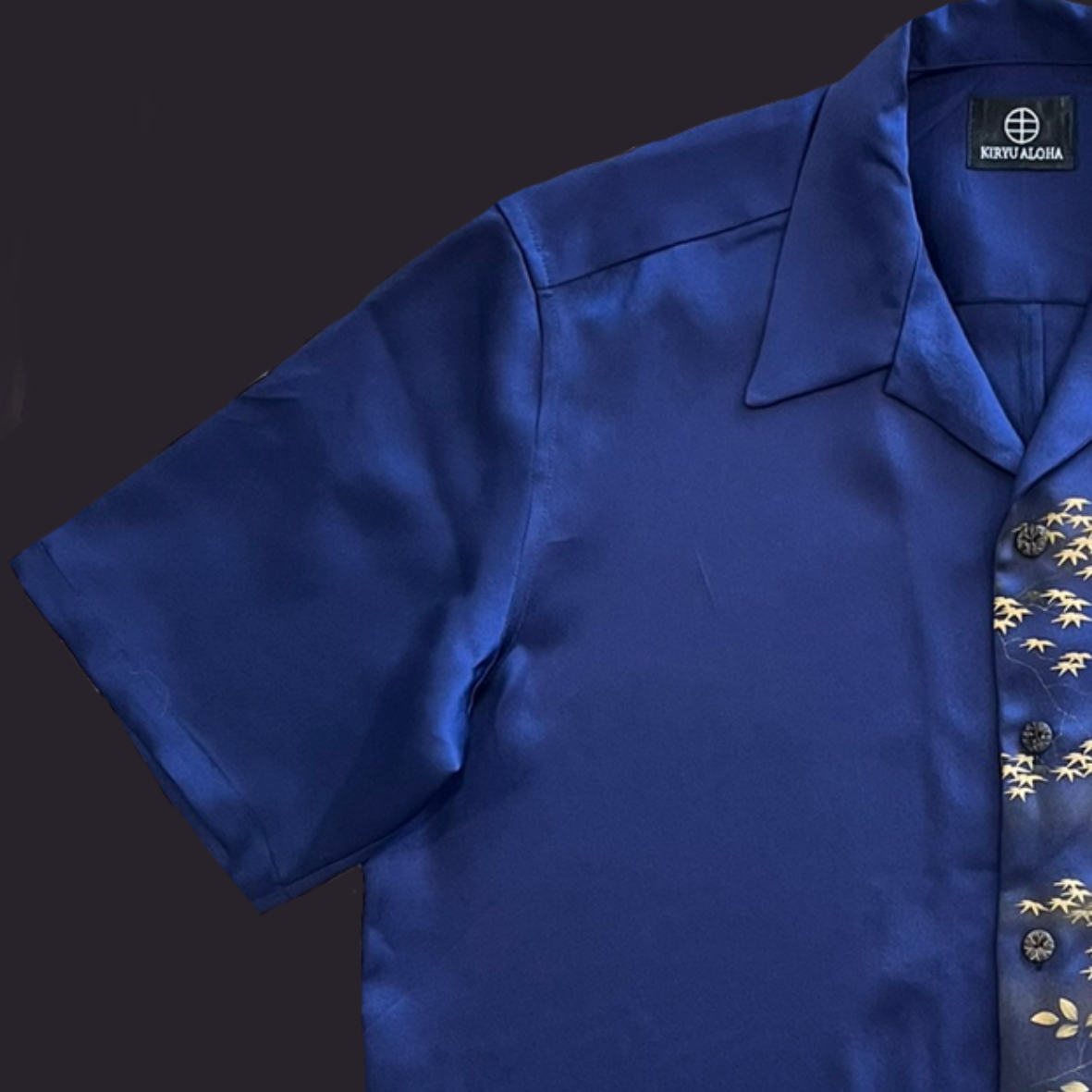 金彩と金糸の刺繍を施し青地に金一色の上品な柄となっています。