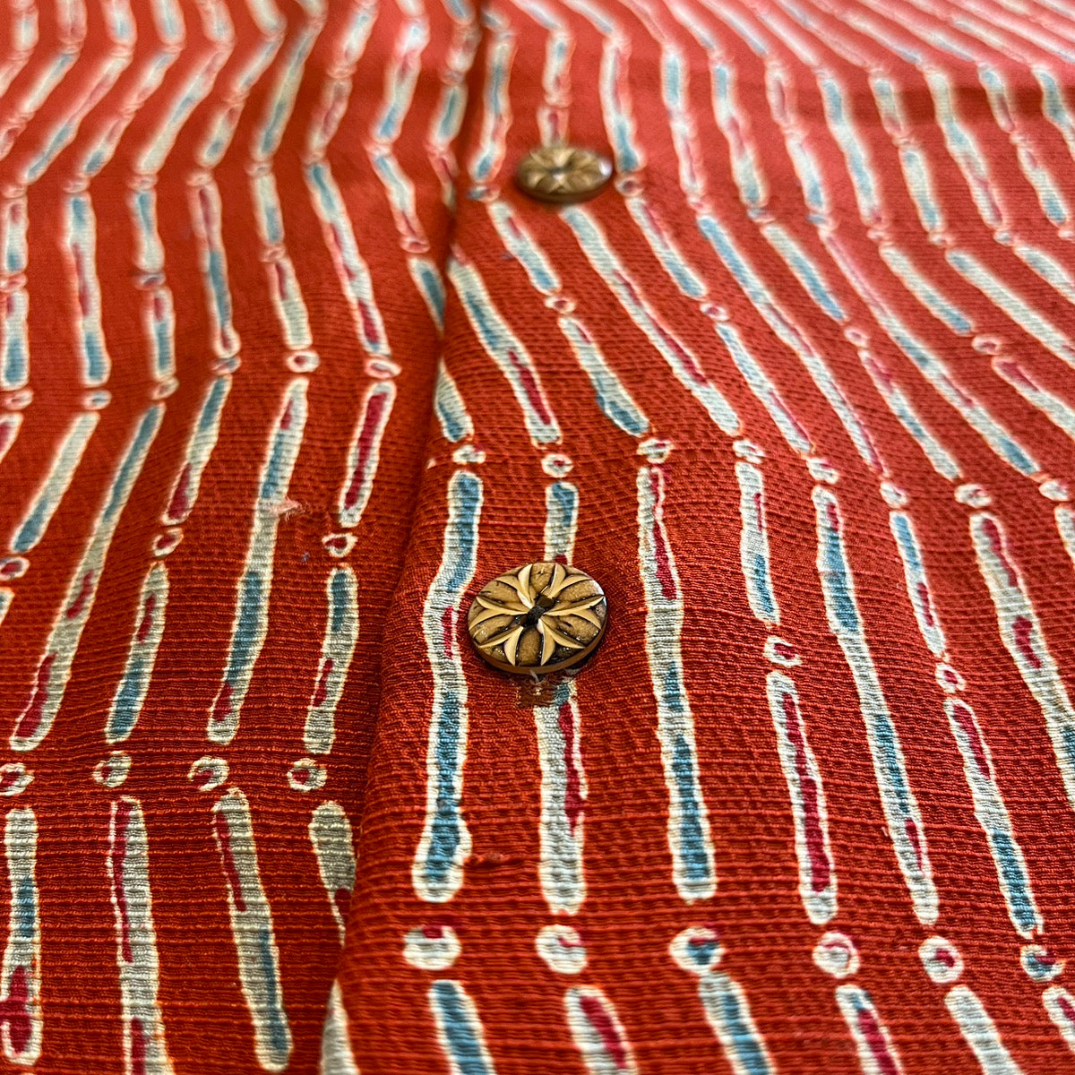 型染で竹の節のような文様の揺らぎを全体にあらわした小紋。