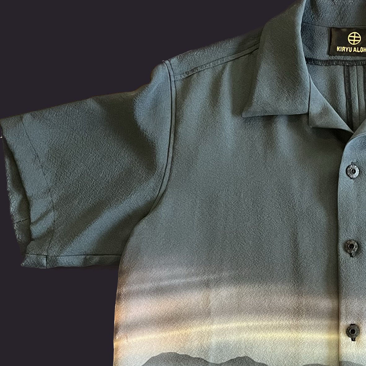 様々な種類の刷毛を使い横に一定に染める高度な技術を駆使し、幻想的な風景を表現しています。