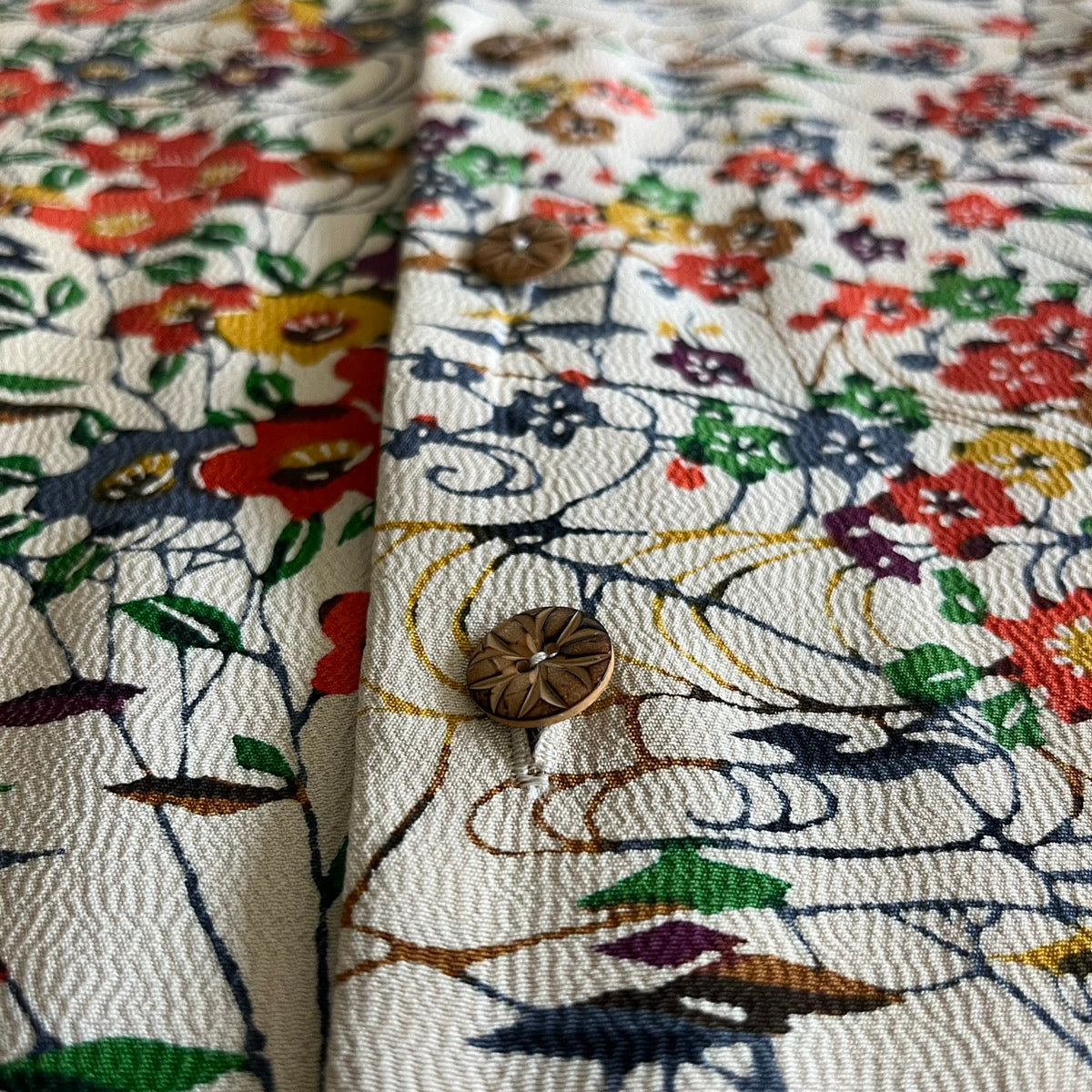 ・年代ものの着物を使用しているため、落としきれない変色や染め飛び、織難がある場合があります。ご了承のうえ着物が持つ風合いとしてお楽しみください。