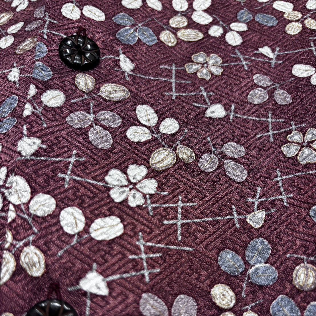 萩の葉を桜の花とともに全体に表現した小紋をアロハシャツに。