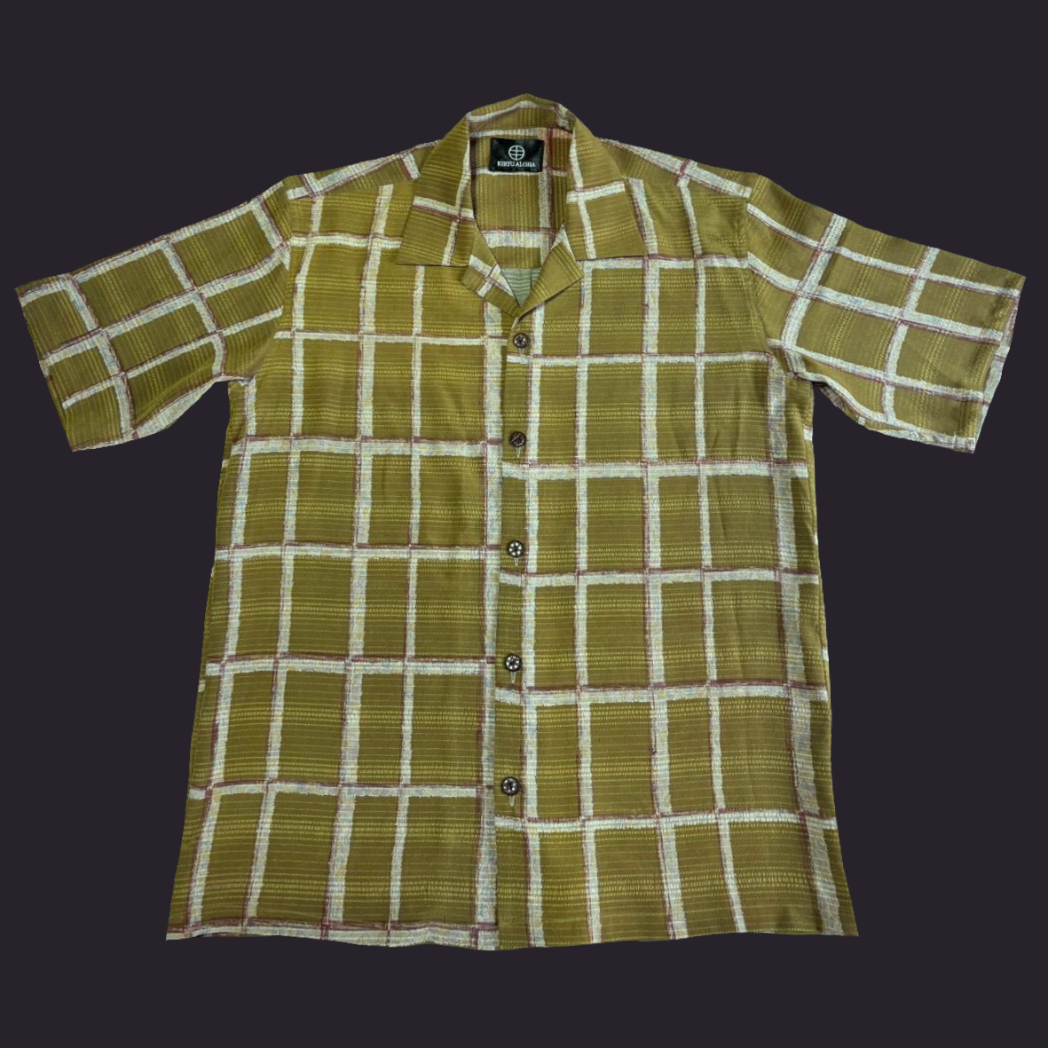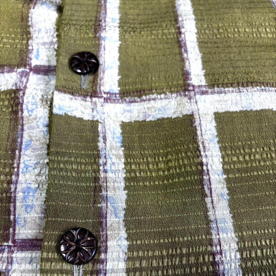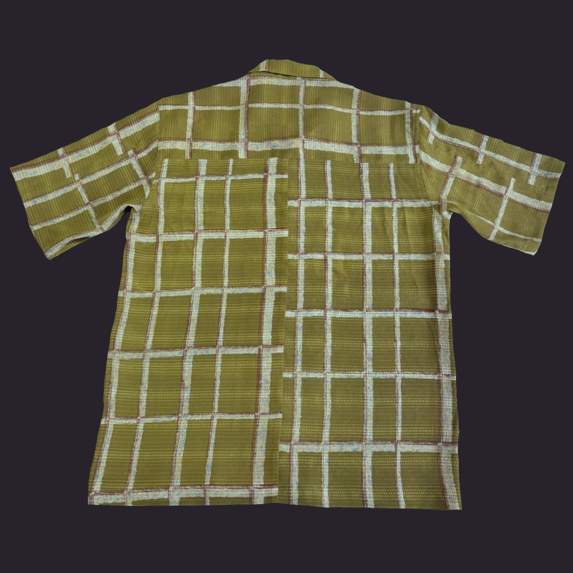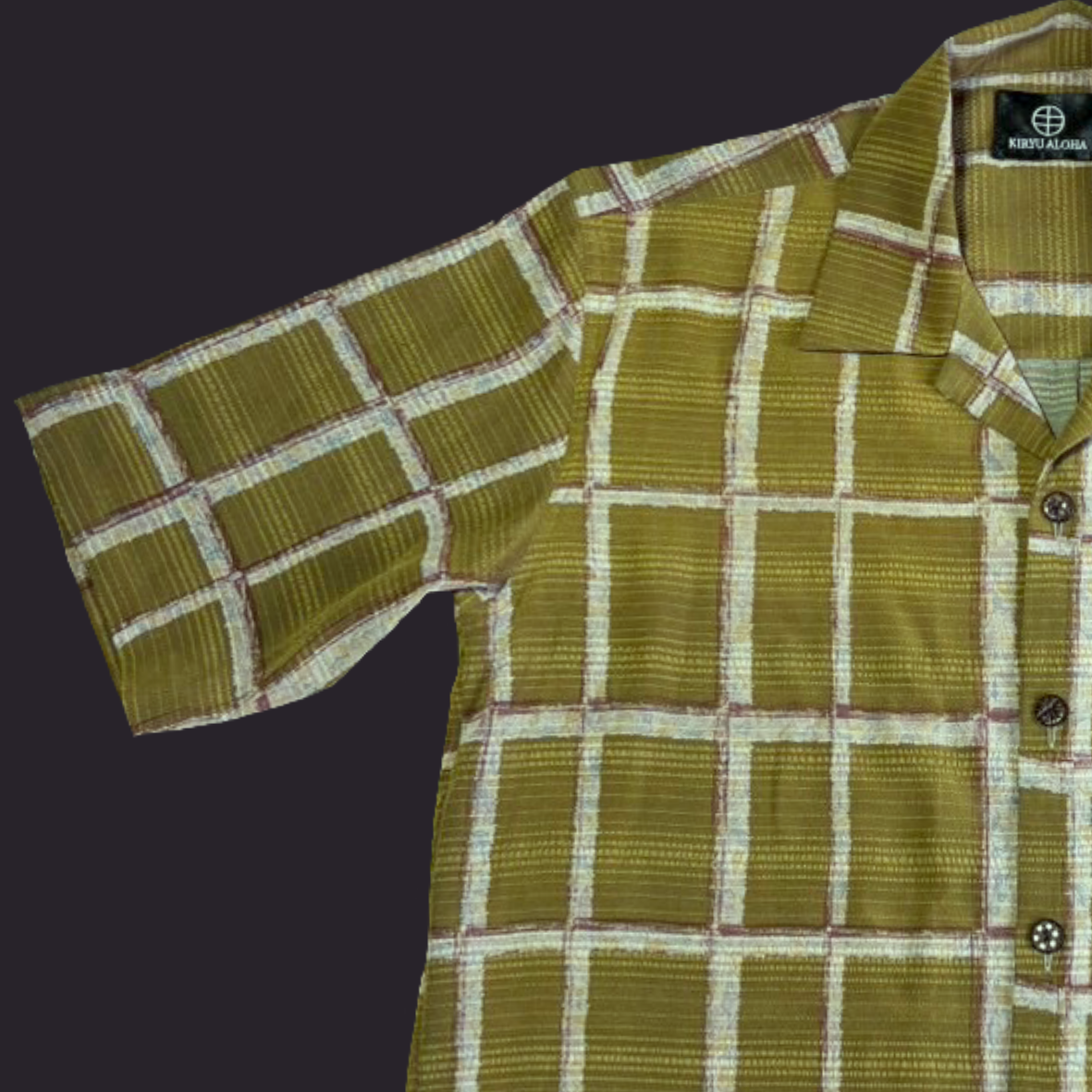柳色の地にカジュアルな格子柄を染めた小紋。