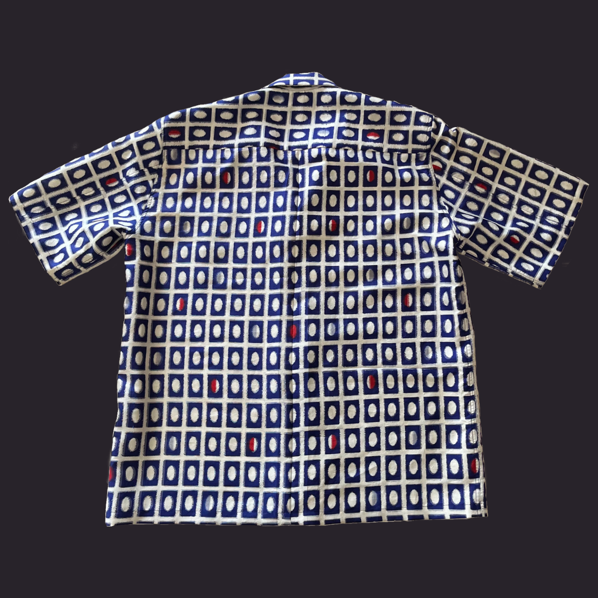格子文様の中に楕円形を入れ込んだ銘仙から。