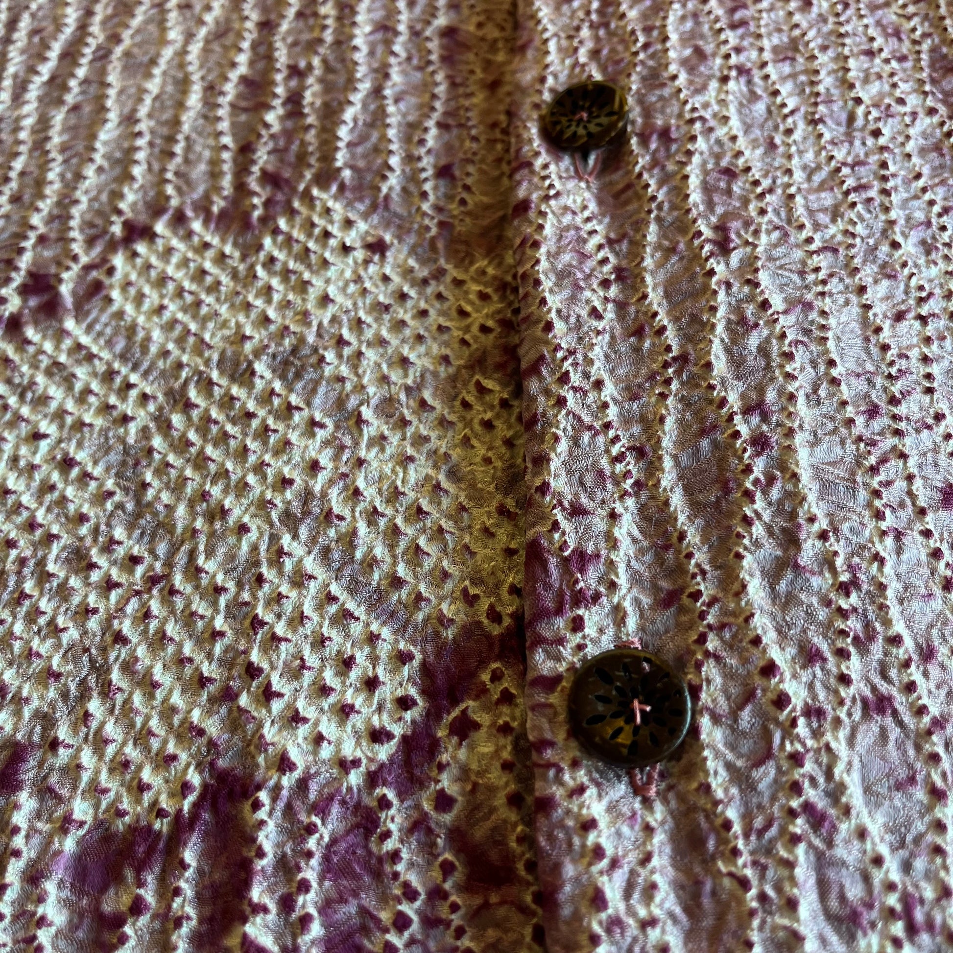 全て手作業で行う総絞りは、染める前に生地すべてを非常に細かく括る必要があり、多くの染め技法の中でも最も贅沢なもののひとつとして知られています。