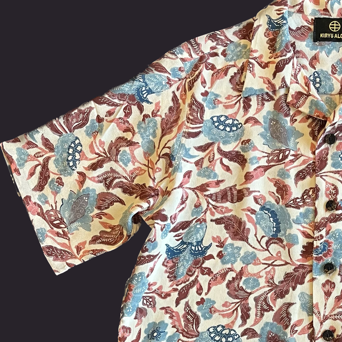 型染で染められた更紗(さらさ)紋様の小紋から。