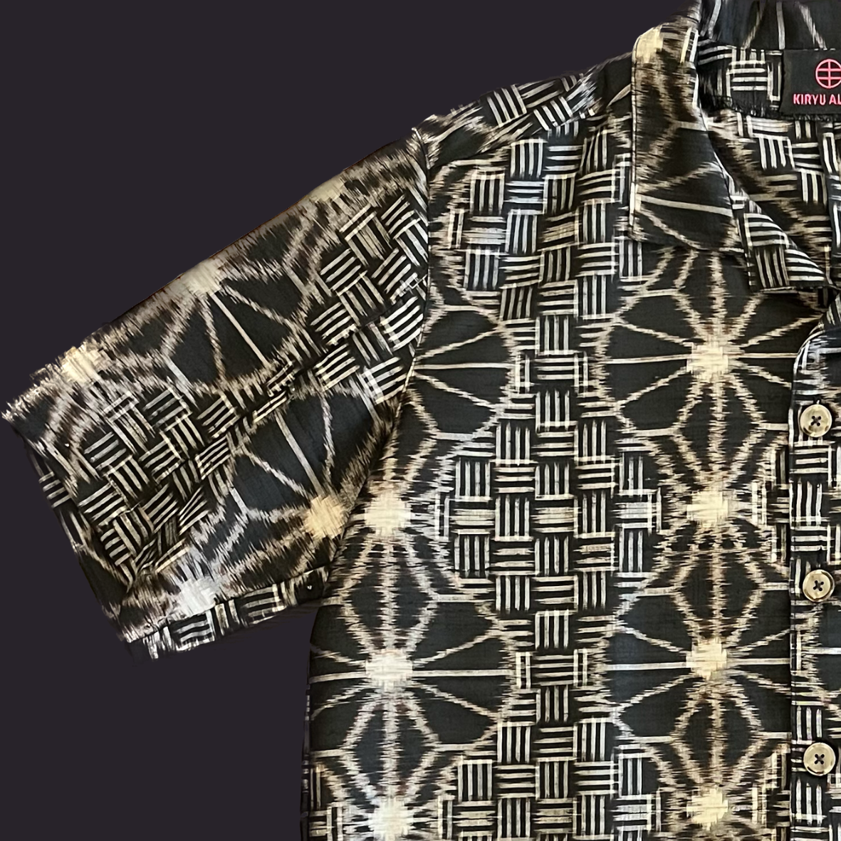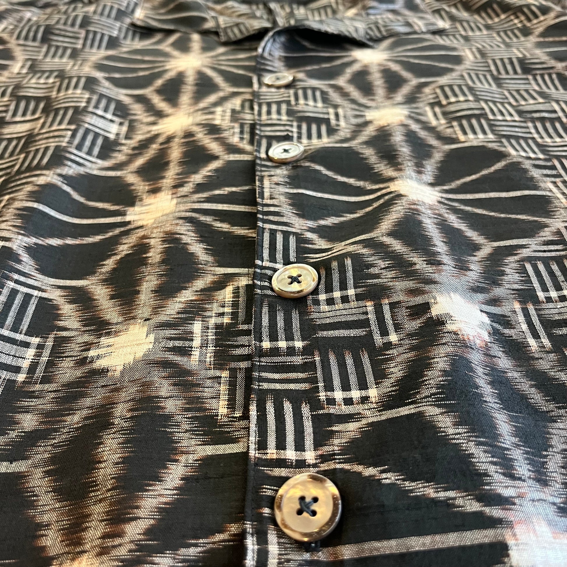 銘仙 ― 絣(かすり)という技法を用いた平織りの絹織物。布を織る前の糸の段階で染色を行う先染めと呼ばれる織物です。等間隔の幅に並べた経糸を一本ずつ上下に分け、その間に緯糸を通していく作業を何回も繰り返し行います。経糸と緯糸の色をずらしながら織ることで柄がにじんだような風合いになるのが特徴です。大正~昭和に一世風靡した銘仙ですが、現在では生産数の少ない貴重な織物となっています。