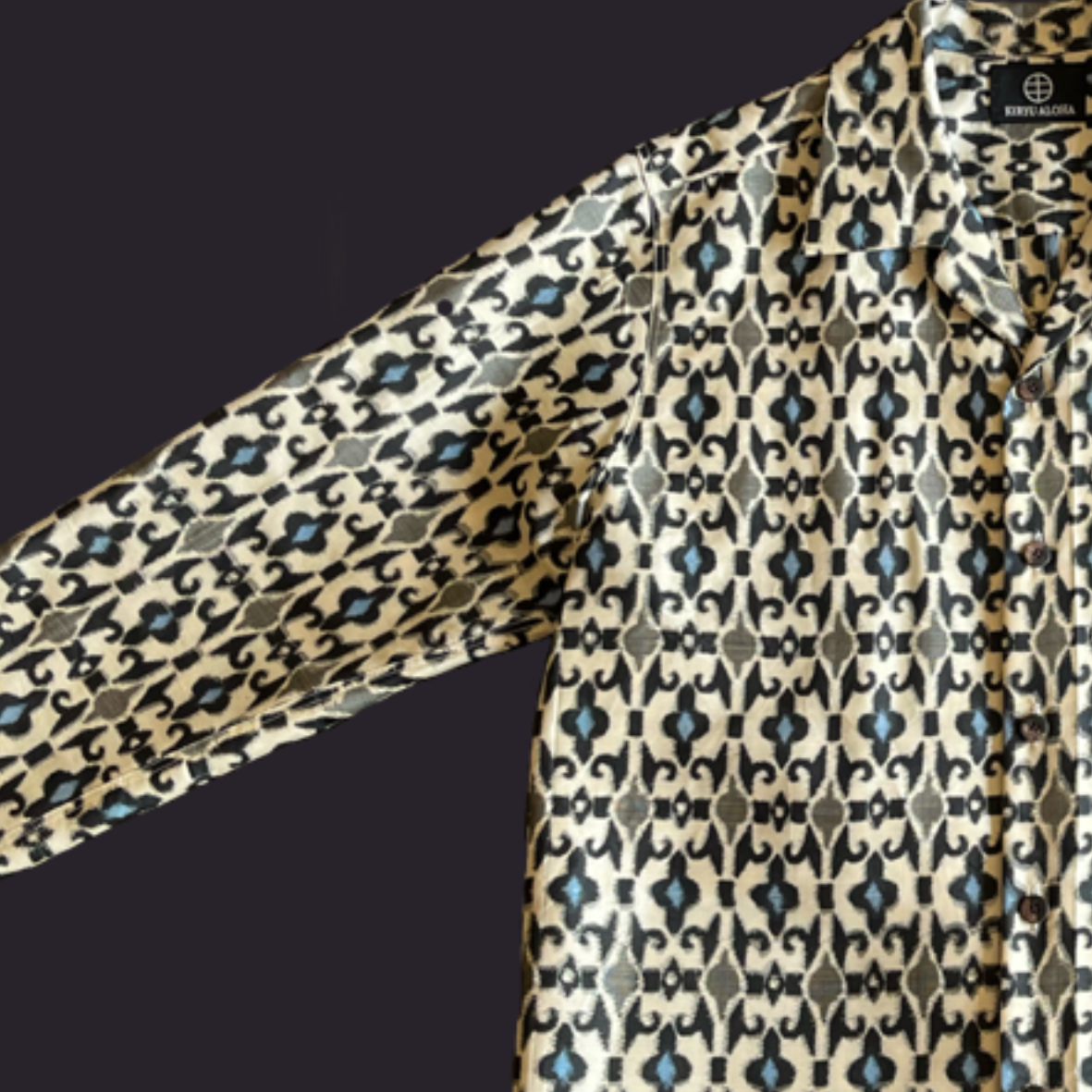 織りで和洋折衷のモチーフを表現した銘仙から長袖のアロハシャツに。