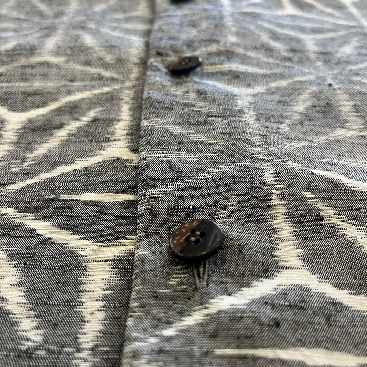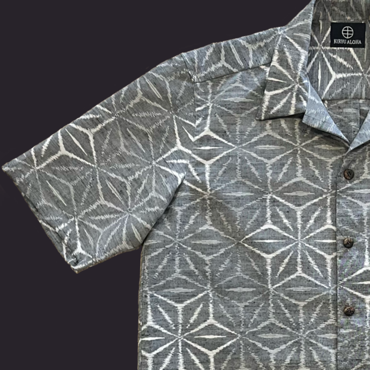麻の葉文様を全体に織った紬をアロハシャツに。