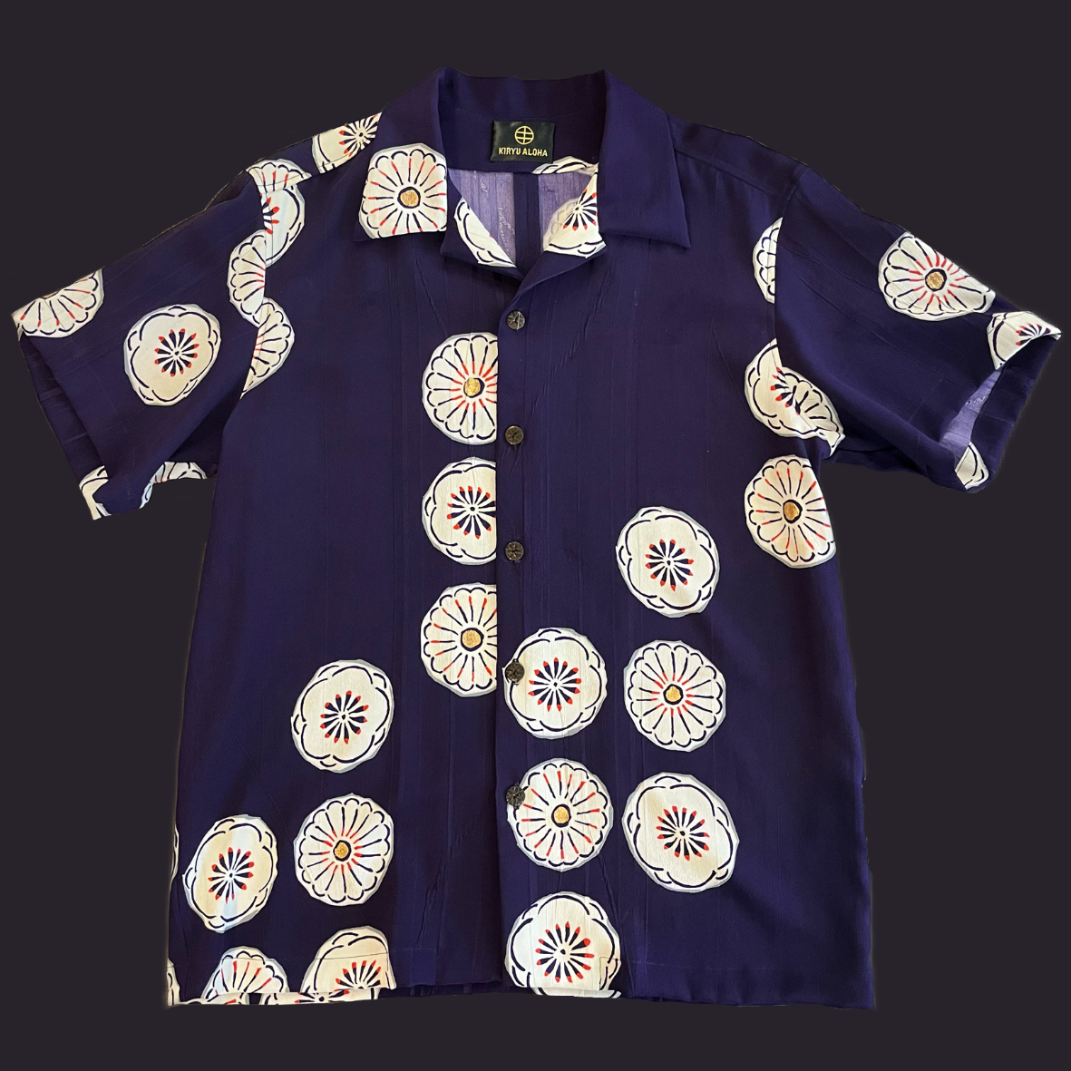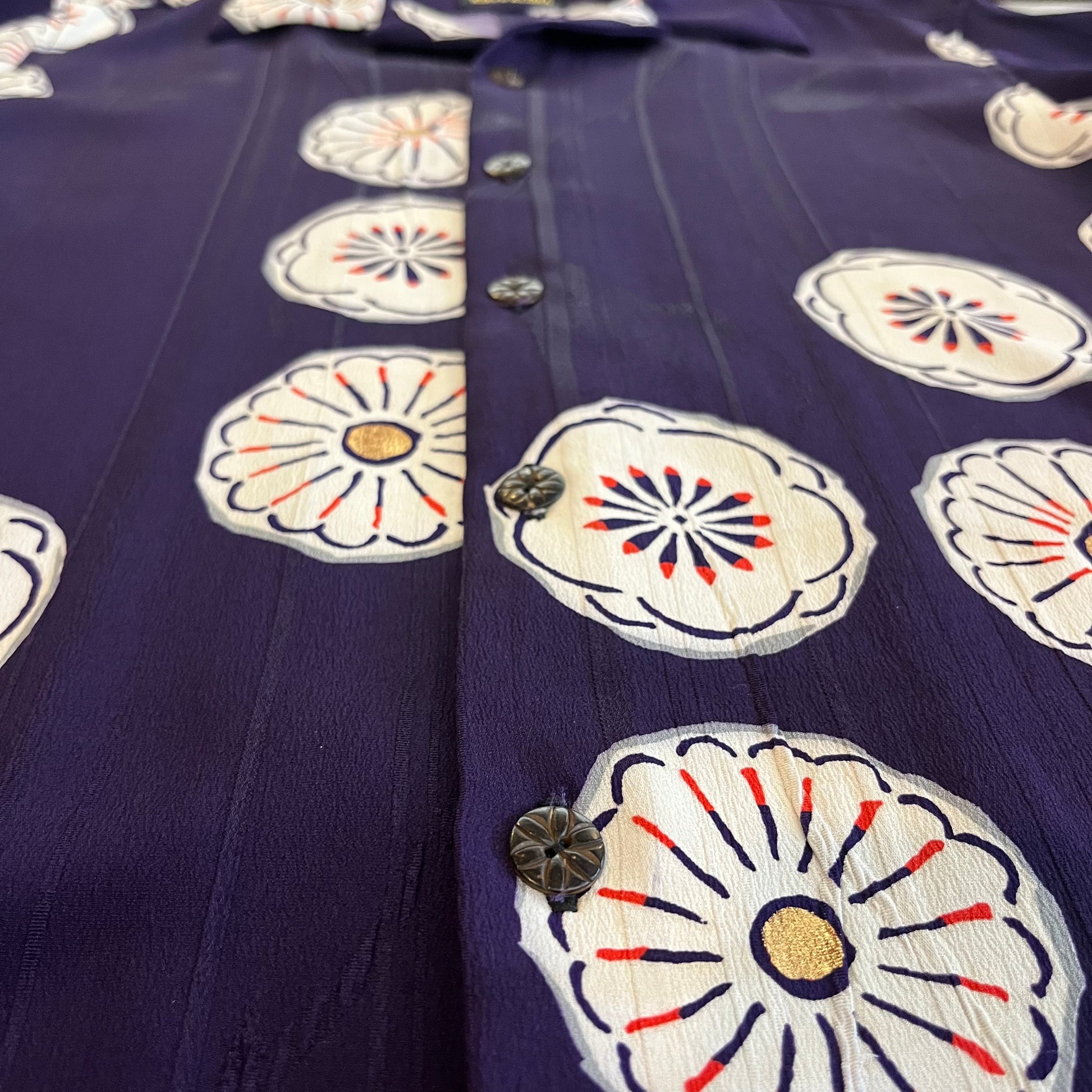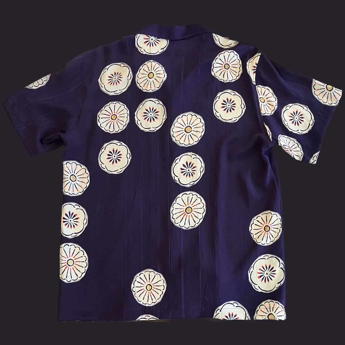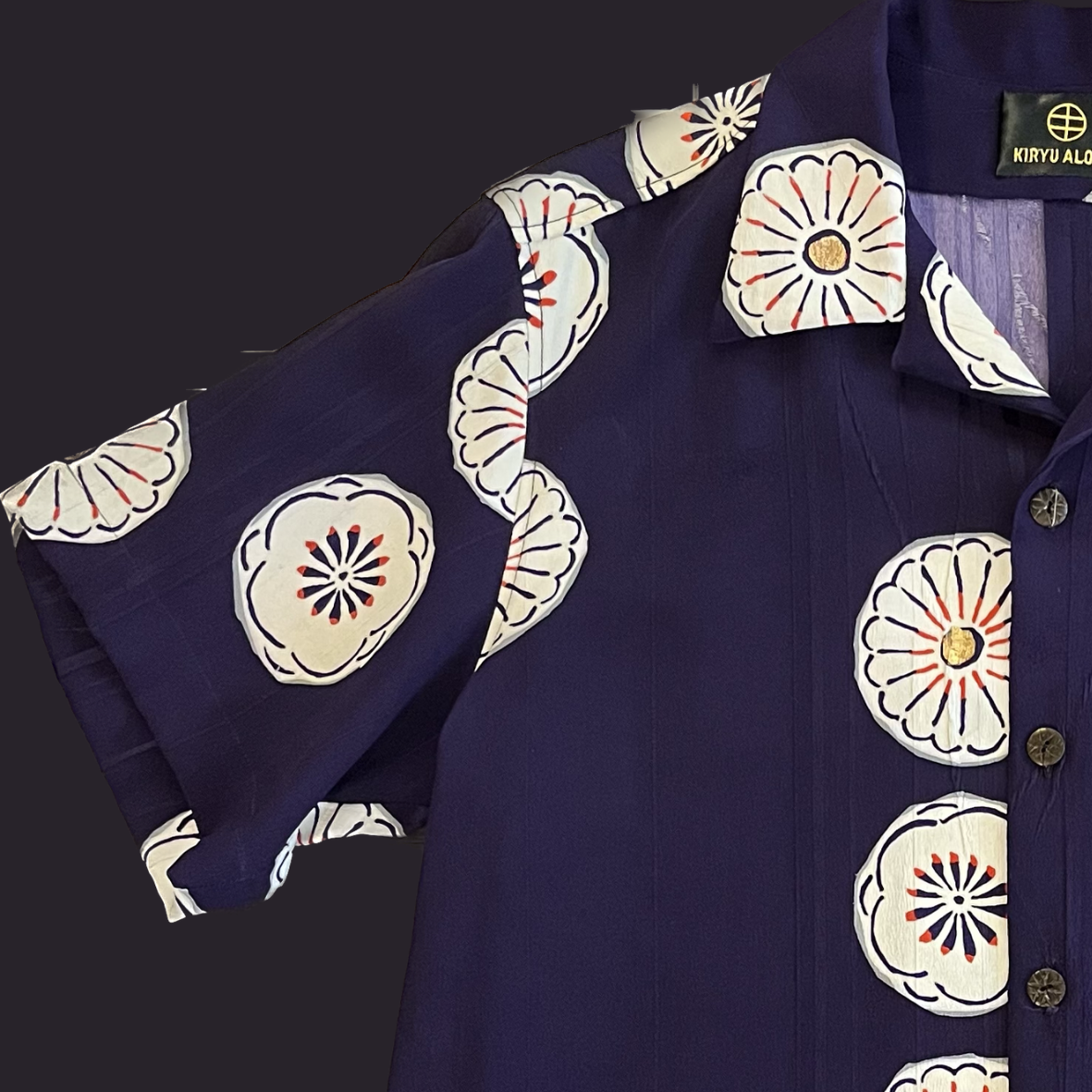 八重向梅(やえむこううめ)紋と菊紋を手描きで染めた小紋から。