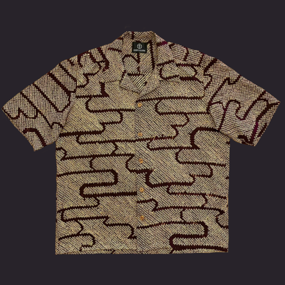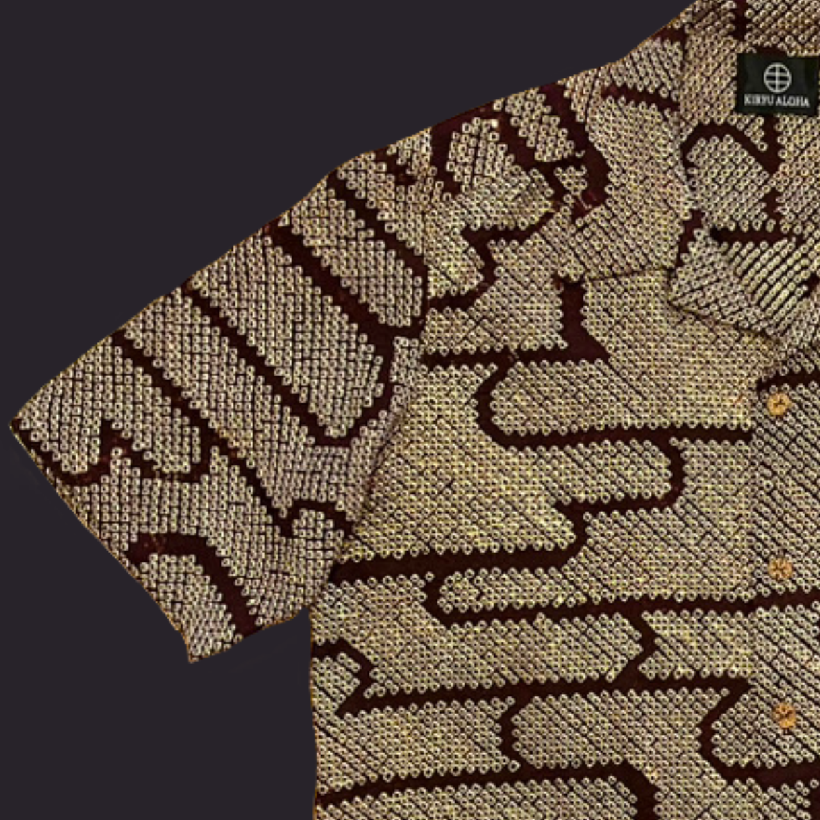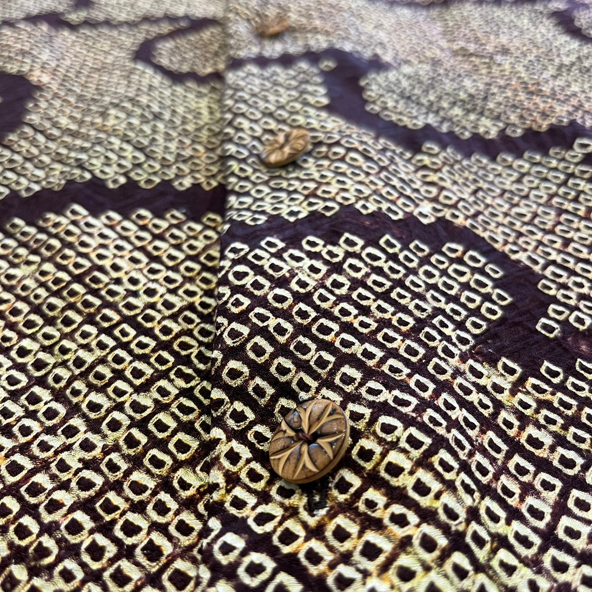 総絞り染めでヱ霞文様を全体に表現した小紋をアロハシャツに。