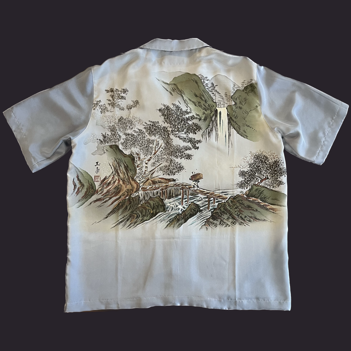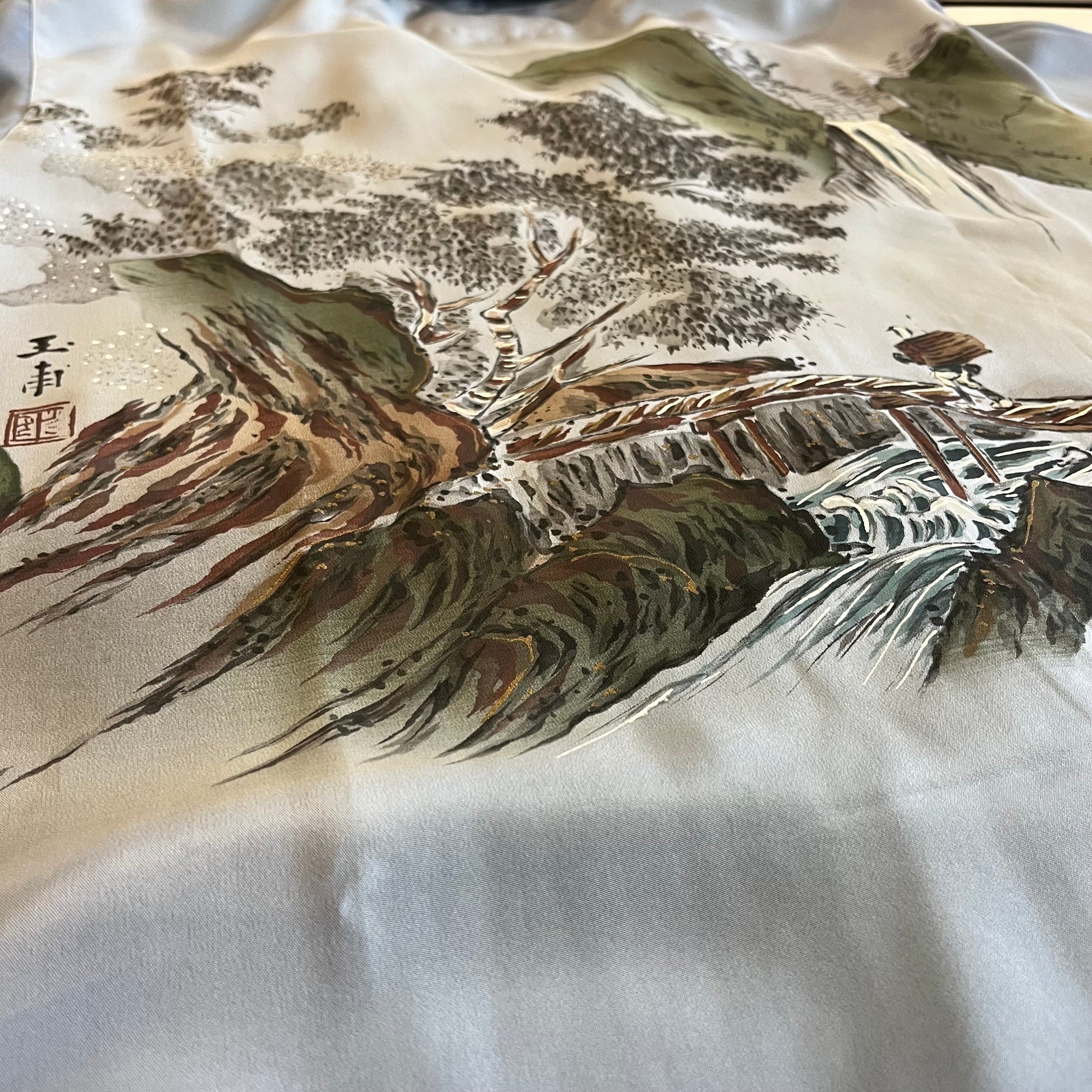 友禅で風景画を描いた長襦袢をアロハシャツに。